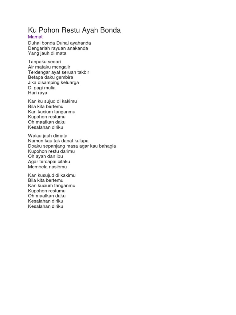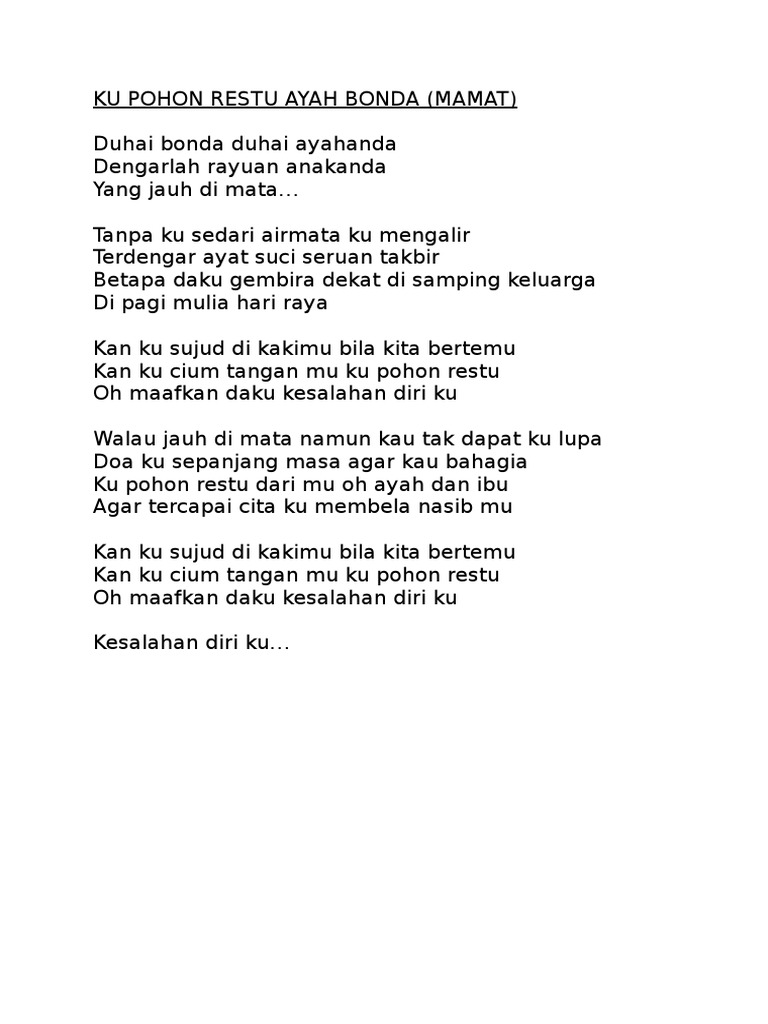 Ku Pohon Restu Ayah Bonda Mamat Pdf